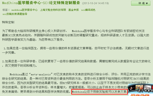 12月21日,澎湃新聞在《中國“神秘論文工廠”曝光:只要出錢就能在科學(xué)雜志上掛名》一文中報道了《科學(xué)美國人》雜志的調(diào)查發(fā)現(xiàn),該雜志表示,國際科學(xué)期刊上不少來自中國的論文可能是由某些所謂“論文工廠”集中生產(chǎn),并點到了一家名為“MedChina”的“論文工廠”。